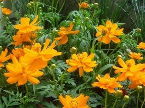 生活習(xí)性:硫華菊喜陽光充足,不耐寒。多分枝,葉為對(duì)生的二回羽狀復(fù)葉,深裂,裂片呈披針形,有短尖,葉緣粗糙,與大波斯菊相比葉片更寬。春播花期6-8月,夏播花期9-10月。