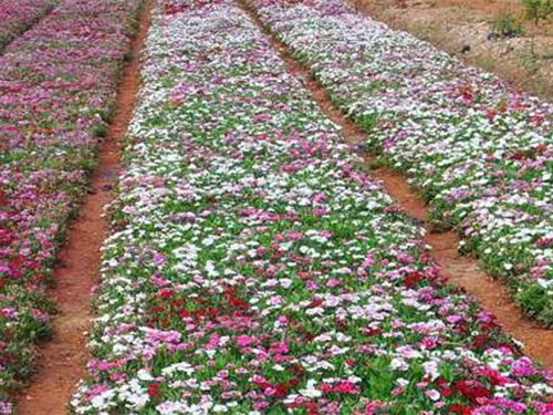 石竹株型低矮,莖稈似竹,葉叢青翠,自然花期5-9月,從暮春季節(jié)可開(kāi)至仲秋,溫室盆栽可以花開(kāi)四季。花頂生枝端,單生或成對(duì),也有呈圓錐狀聚傘花序,花徑不大,僅2至3厘米,但花朵繁茂,此起彼伏,觀賞期較長(zhǎng)。花色有白、粉、紅、粉紅、大紅、紫、淡紫、黃、藍(lán)等,五彩繽紛,變化萬(wàn)端。園林中可用于花壇、花境、花臺(tái)或盆栽,也可用于巖石園和草坪邊緣點(diǎn)綴。大面積成片栽植時(shí)可作景觀地被材料,另外石竹有吸收二氧化硫和氯氣的本領(lǐng),凡有毒氣的地方可以多種。切花觀賞亦佳。